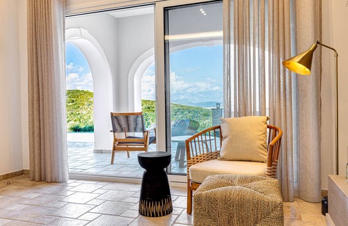 Nestled into the mountain side with unparalleled view of the sea, the layout of “Agios Stefanos Bay - Villa Dimitris” allows for the splendor of the view to be appreciated from each and every room.