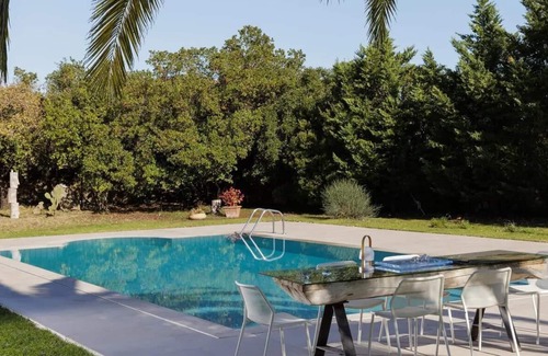 The magnificent landscaped gardens truly complete the property. Guests of villa Gaia will enjoy a large private swimming pool with a spacious sun-bathing area with comfortable sun-loungers and beautiful shaded seating areas. Additionally, each villa has a beautiful dining area located next to the pool, allowing for shared meals in a picturesque setting. The villas are surrounded by beautiful Mediterranean vegetation, including olive trees, pines, oleanders, and carob trees, providing a truly lush and verdant atmosphere.