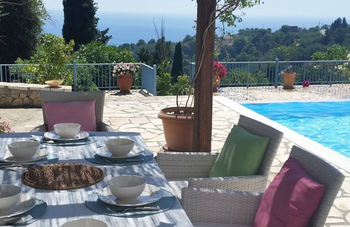 A newly built 3 bedroom villa Daphne is located in one of the most beautiful places in Corfu, above long sandy beaches, just below the village of Pelekas, on the west coast of Corfu. Stunning open wide sea view accommodates every point in the villa, and also allows, vacation complete privacy and intimacy. The villa is fully fitted to an exceptionally high contemporary standard, with full central heating and air conditioning. All rooms are of larger than average size with en-suite shower room. Private infinity pool - 10m x 5m, is maximum depth of 1.7m with built-in steps and underwater lighting. There is an also private off-road parking
