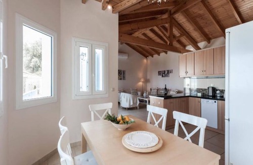 Spacious, sea view, 3 bedroom villa Daphne is located in one of the most beautiful places in Corfu, above long sandy beaches, just below the village of Pelekas, on the west coast of Corfu. Stunning open wide sea view accommodates every point in the villa, and also allows, vacation complete privacy and intimacy. The villa is fully fitted to an exceptionally high contemporary standard, with full central heating and air conditioning. All rooms are of larger than average size with en-suite shower room. Private infinity pool - 10m x 5m, is maximum depth of 1.7m with built-in steps and underwater lighting. There is an also private off-road parking