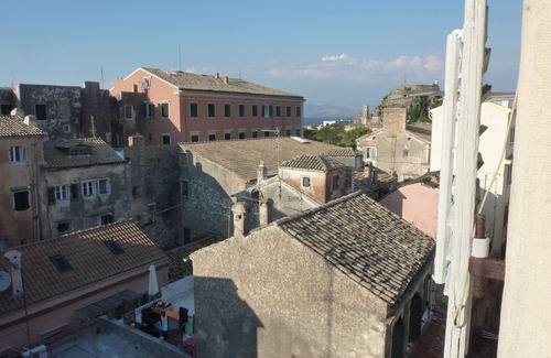 The house is located in the center of the old town of Corfu, on the top floor of an old Venetian building and has its own entrance on the 3rd floor. An internal staircase leads to the 52 m2 apartment which includes: the living room, equipped with, among other things, two sofa beds, the bedroom with a double bed (1.60x200), a small raised bedroom with a single bed (1 , 00x1.90), a fully equipped kitchen and a bathroom with wc. The apartment is ideal for a couple or a couple with a child, but it can accommodate up to 4 people maximum (using the sofa bed in the living room). Household appliances that belong to the apartment can all be used. In addition to the basic appliances (air conditioning, electric stove, refrigerator, etc.), independent heaters or fans are available. The apartment is very quiet, very bright at all hours of the day, with a magnificent view of the old town, the main square (Esplanade), the fortress and the sea.