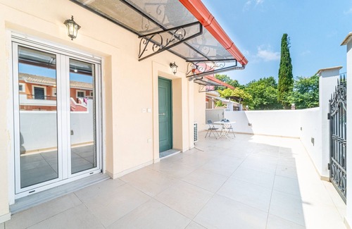 The nearby facilities and destinations include a mini market and an urban shop (1 km from the property), a supermarket (1.5 km), Alykes river beach (2.5 km) and the center of Corfu (3 km).