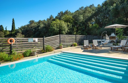 One of the villa's standout features is its expansive, walled front yard, ideal for relaxing in the virgin countryside. Here, guests can enjoy the beautiful pool, basking in the Corfu sunshine for a perfect suntan.
