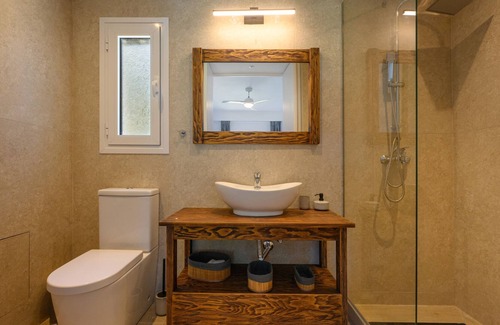 Playia Villa I is an Neoclassical villa built on the highest point of Petriti, in the area of Playa. It consists of 3 bedrooms, 3 bathrooms, a living room, a dining room, a fully equipped kitchen and a veranda.