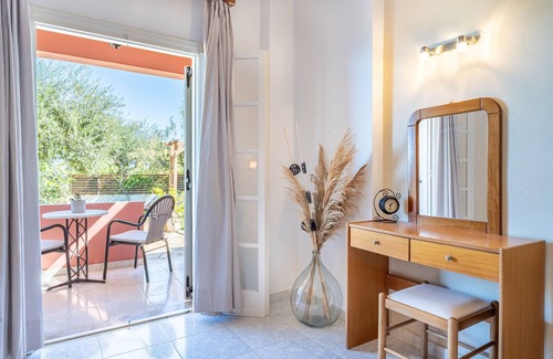In the village of Karousades you will find a supermarket and taverns, where you can enjoy fresh fish and traditional Ionian flavours. The seaside town of Acharavi is 4 km away, while Sidari is 5 km away. Free private parking is available on site.