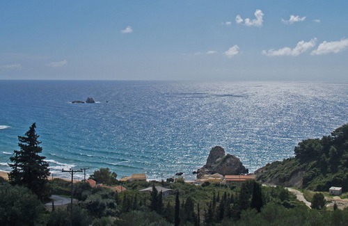 House is situated above the Pelekas beach one of the most beautiful sandy beaches of Corfu, overlooking the Ionian Sea. Located on the west coast, 1 Km from Pelekas village and 12 km from Corfu town. Down to the Pelekas beach is about 300 meter walk.